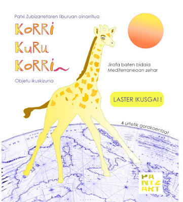 Korri, kuru, korri, 4 urtetik gorako haurrentzat objektuez osatutako obra da, Patxi Zubizarretaren izen bereko obran oinarritua. Zubizarretak 2019ko Haur eta Gazte Literaturako Euskadi Saria lortu zuen liburuan, Europara iristen den mutiko afrikar baten istorioa kontatzen da.